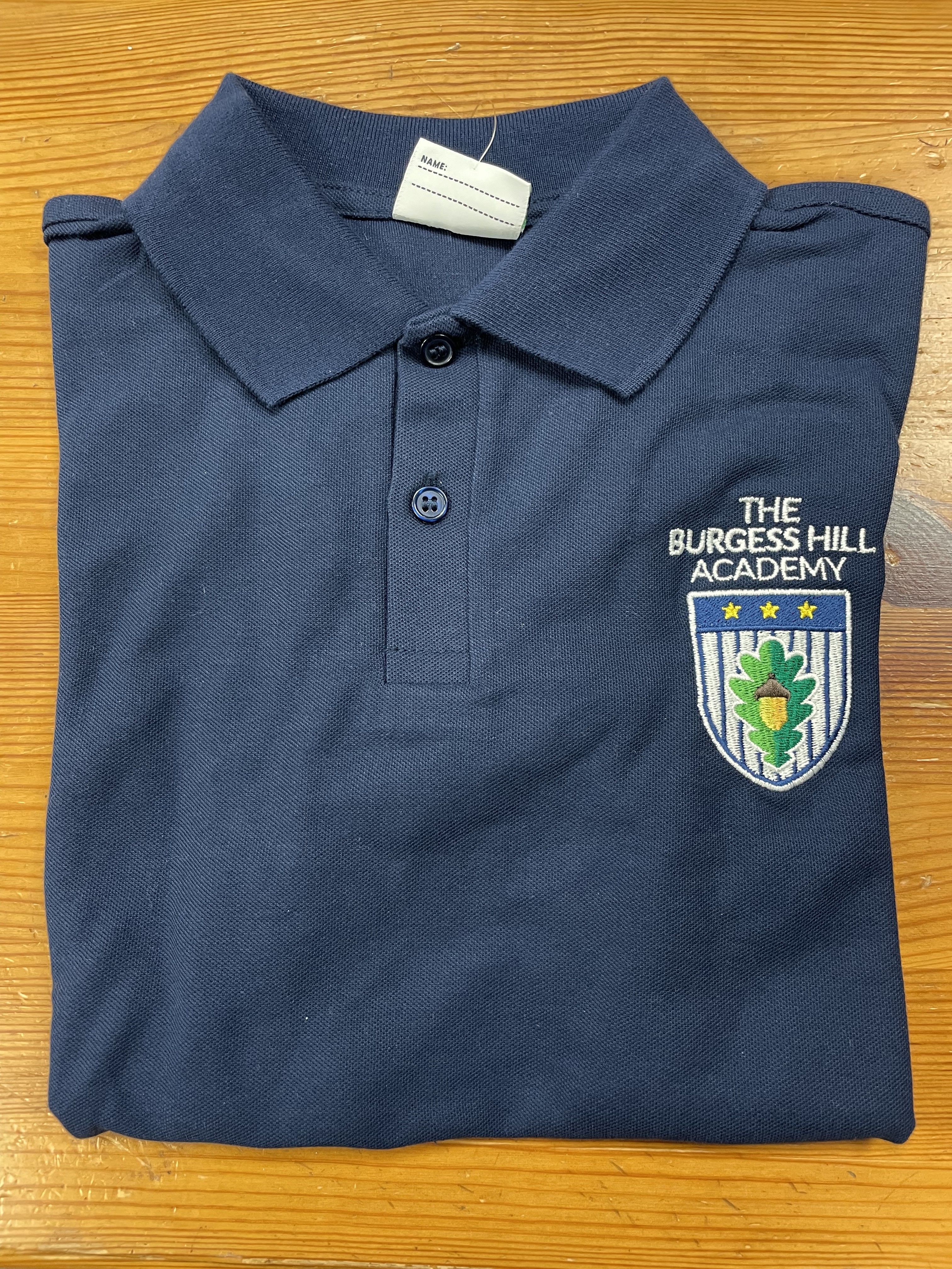 Navy sports polo with school logo